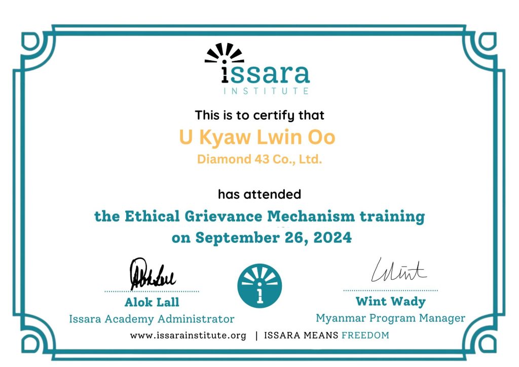 Training on the Ethical Grievance Mechanism Training @ September 26, 2024