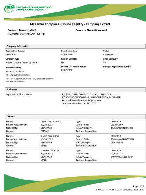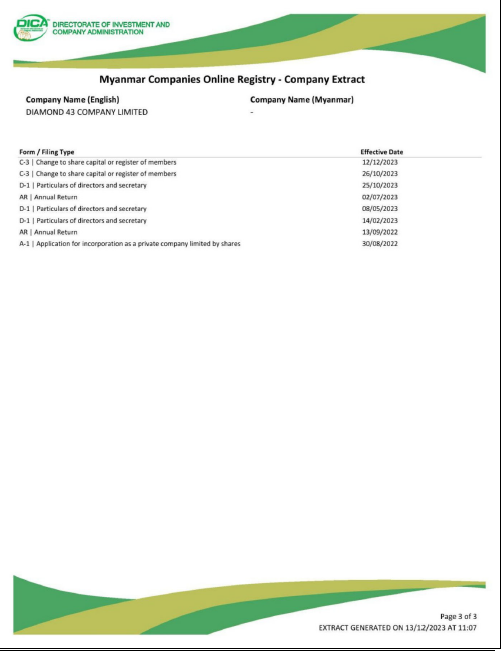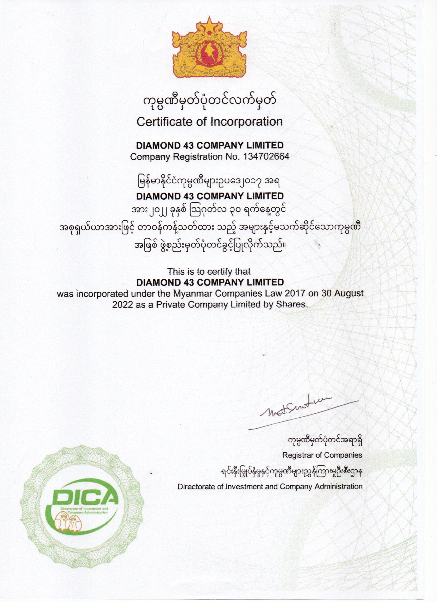 Our company named Diamond 43 Co., Ltd. was established in 2023.